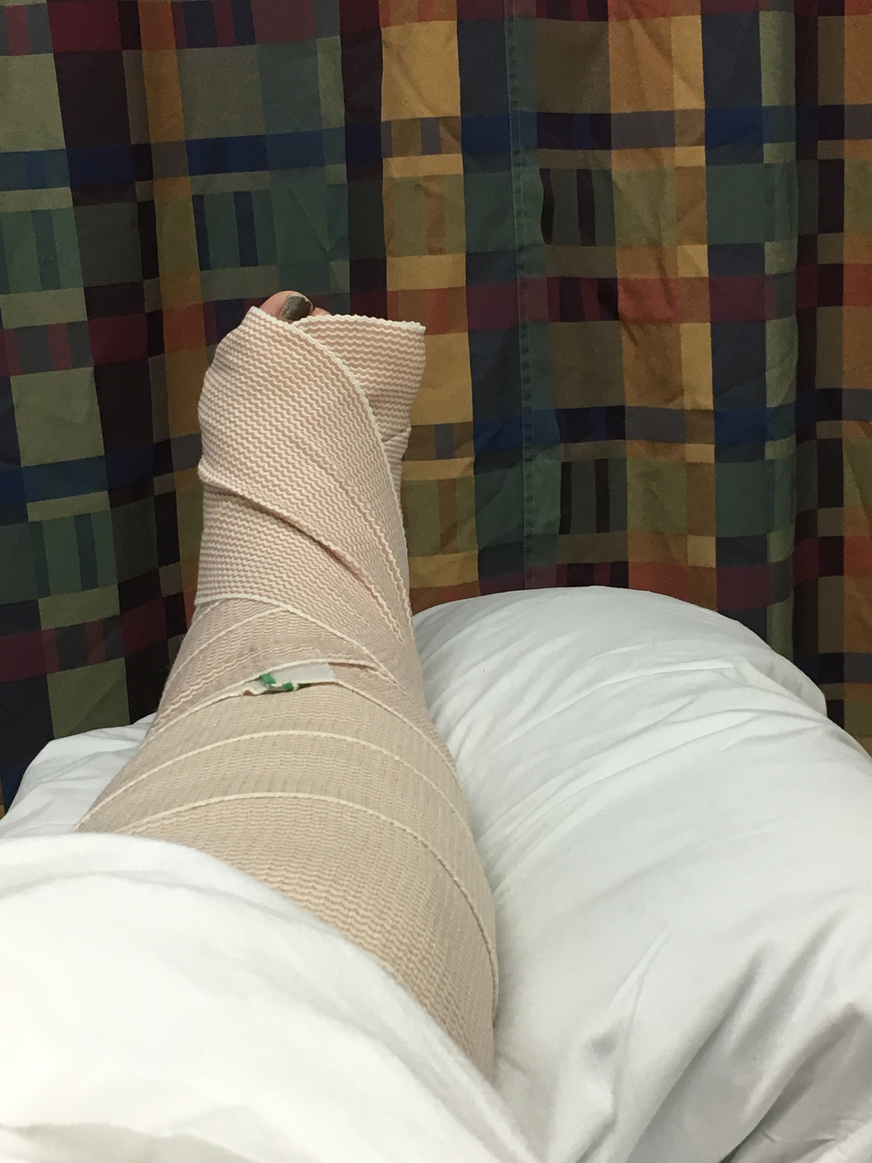 As far as I know my surgery went well. The surgeon didn’t come and see me at all yesterday after I got back to my room. I have been here all alone as well so I don’t even know how long the surgery took. They had to put a metal plate and screws in as I broke 3 different ankle bones. I definitely have a long and painful road ahead of me.